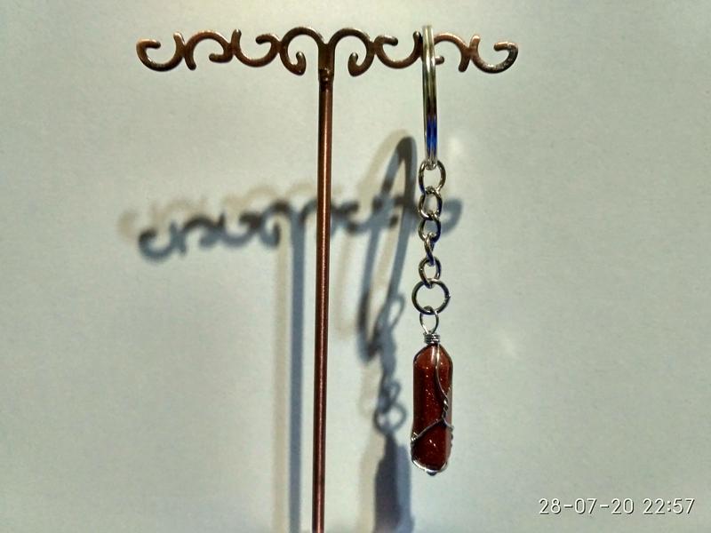 Стильный брелок в оплётке-оберег из камня-кристалл(авантюрин-золотой песок).