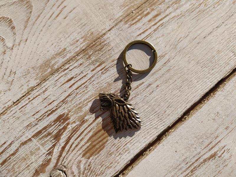 Брелок по игре престолов с символом дома Старков - лютевовком.