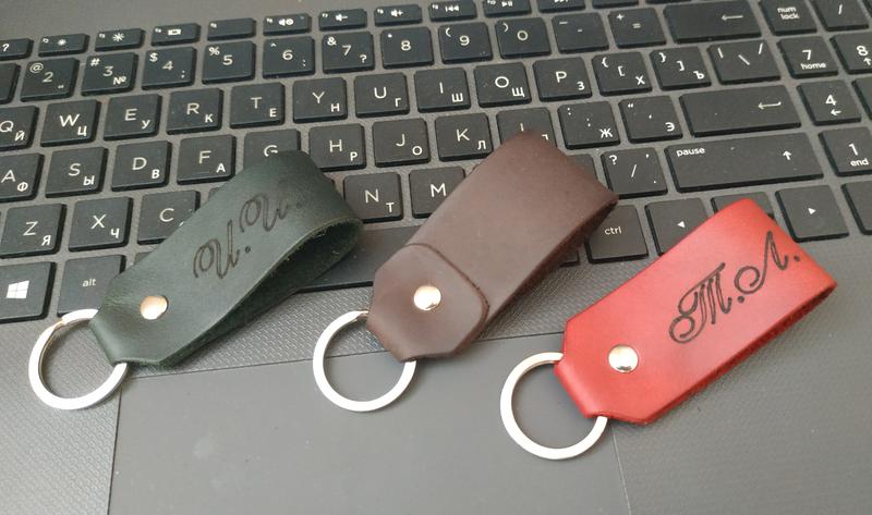 Кожаный брелок для ключей, цветовая палитра. Гравировка инициалов.