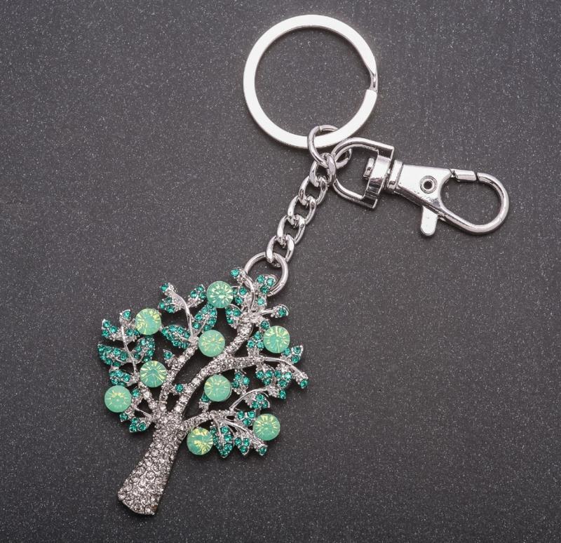 Брелок Дерево в зеленых стразах цвет металла серый 5,5х4,2см L-12,5см