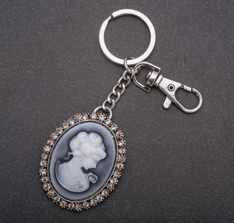 Брелок камея в стразах шампань, 50х40мм l-12,5см