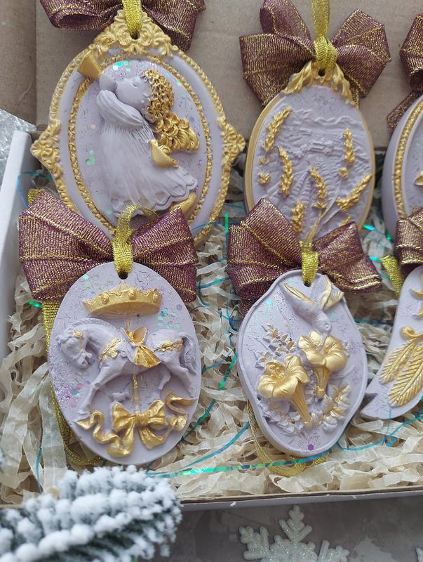 Набор елочных украшений ручной работы💫 В наборе 6 елочных игрушек из высокопрочного гипса с росписью золотом. Подарочная упаковка.