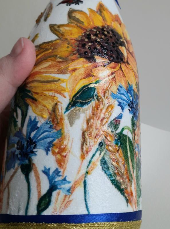 Декор в украинском стиле, декор бутылки в технике декупаж из прорисовкля, подарок из украи...