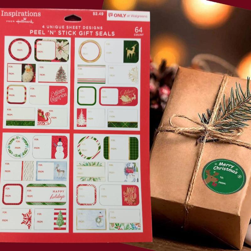 набор подарочных новогодних рождественских наклеек 64 шт (по 8 шт на 8 листах) на подарки открытки "Inspirations" от Hallmark. Цена за 1 набор из 64 наклеек. Бренд: Hallmark. Отклеивающиеся подарочные наклейки / стикерв (Peel 'N' Stick Gift Seals). Красивые, яркие, блестящие, на любой вкус и хватит на все подарки. Количество: 64 штуки. Цена: 2,49 доллара США, продается эксклюзивно в Walgreens. Яркие блестящие красивые наклейки для украшения Ваших подарков и подписи от кого и кому