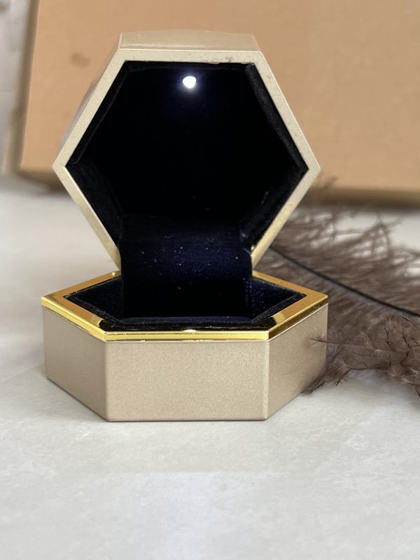 Гарний та крутий дизайн футляру, виконана з пластику золотого кольору, в середині чорний оксамит