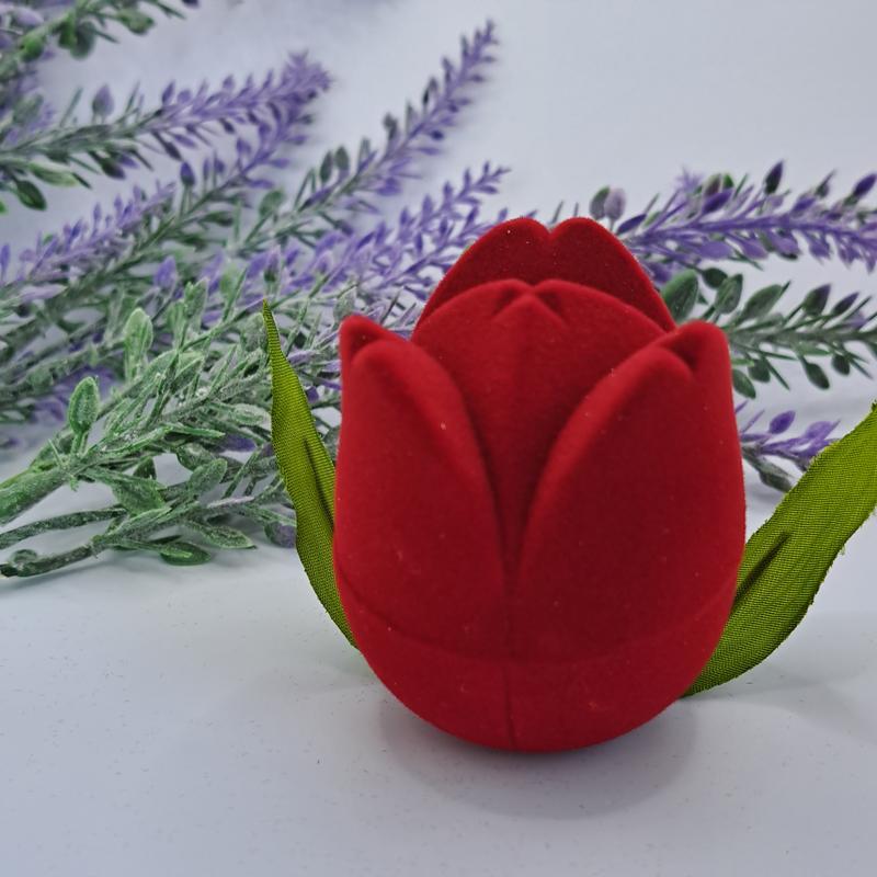 Ювелирная упаковка футляр коробочка для кольца сережек тюльпан красный бархатный