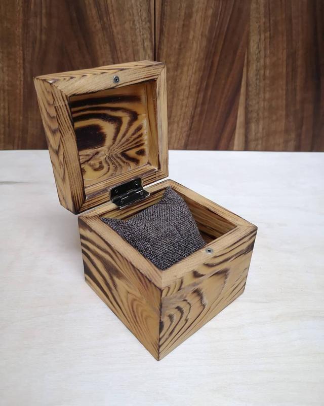 Шкатулочка подарочная для часов, браслета. Предоставить подарку незабываемое обрамление, подарочную упаковку, которую не нужно выбрасывать. Шкатулка из натурального дерева не только бережно хранит украшения, часы, браслеты, но и станет украшением интерьера. Внутри ящика подушечка с рогожки темно серого цвета для бережного хранения. Материал – натуральное дерево сосна Размер - 90*90*90 мм На шкатулку возможно нанесение памятной гравировки (200 грн), что придаст ему индивидуальности и неповторимости.