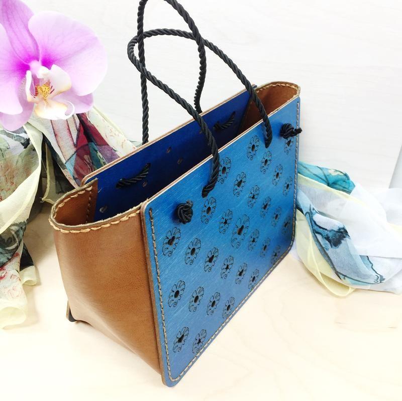 Не знаете как оригинально упаковать подарок? Сумочка-пакет из дерева и экокожи, прошитая вручную вощеной нитью. Очень оригинально, нетривиально, интересно!!! Это сюрприз, неожиданные эмоции! Размер деревянной части 20см Х 15 см, ширина сумочки 9см Узор прорезан насквозь. Дополнительные характеристики: Материал : Дерево Материал : Фанера Персонализация : С гравировкой
