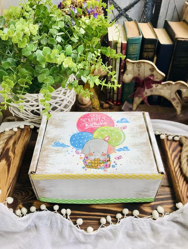 Подарочная коробка “слоник на воздушном шаре” happy birthday, с днём рождения», хендмейд