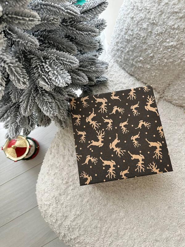 Коробка «Олени»🎄 Размер 18*18*12 см Вмещает 1 комплект белья * В подарок к коробке новогоднее бумажное посыпание и открытка