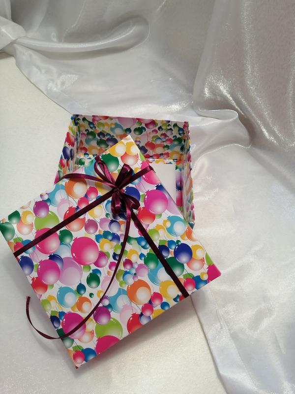 Подарункова картонна коробка принт повітряні кулі з стрічкою стрічка може відрізнятися кол...