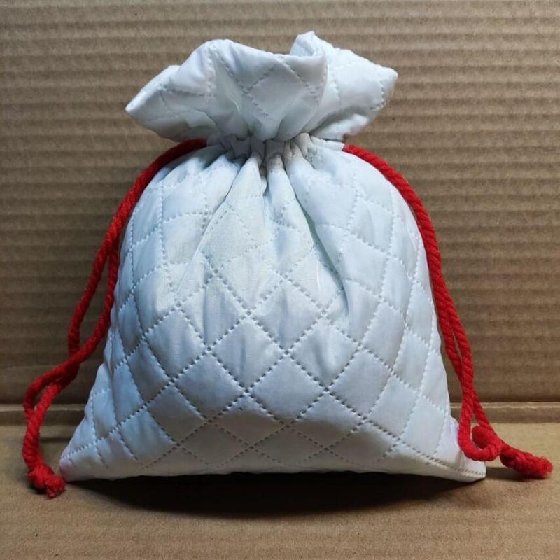## Мешочек для подарков 25*20 см. Атлас БЕЛЫЙ, простеганный на синтепоне с красным шнуром Код 09043 Элитный подарочный мешочек с белым имеет следующие размеры: - высота 25 см (19 см до шнура затягивания) - ширина 20 см. Завязки сделаны из красного скрученного шнура, который аккуратно сшит внутри сумки. Этот мешочек изготовлен из высококачественного атласа, прошитого на синтепоне, который придает ему впечатляющий и оригинальный внешний вид. Блестящая текстура ткани, загадочная облегчение и замечательный белый цвет - это то, что сразу привлекает внимание к этому стильному продукту. Материал, из которого изготовлен мешочек, легко стирается, почти не мнется и всегда выглядит свежим. Вы можете стирать его вместе со вшитыми завязками, которые также выдерживают стирку. После стирки мешок не садится, не теряет свою форму и сохраняет свой первоначальный вид. Этот мешочек можно использовать много раз!