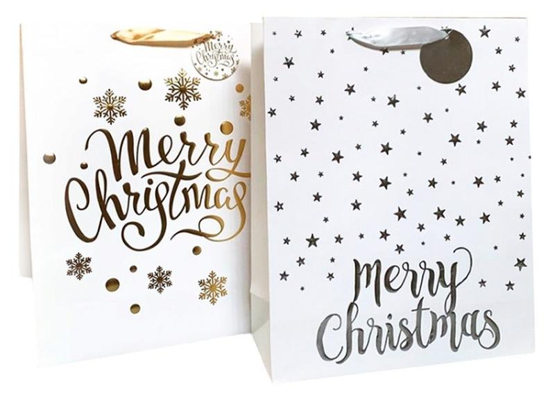 Пакет подарочный 282004 merry christmas белый 26х32х10 см