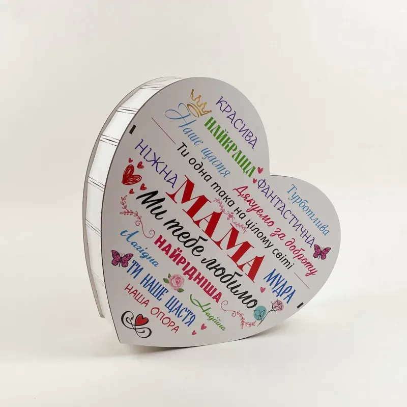 Коробка сердце белая " мама мы тебя любим!"