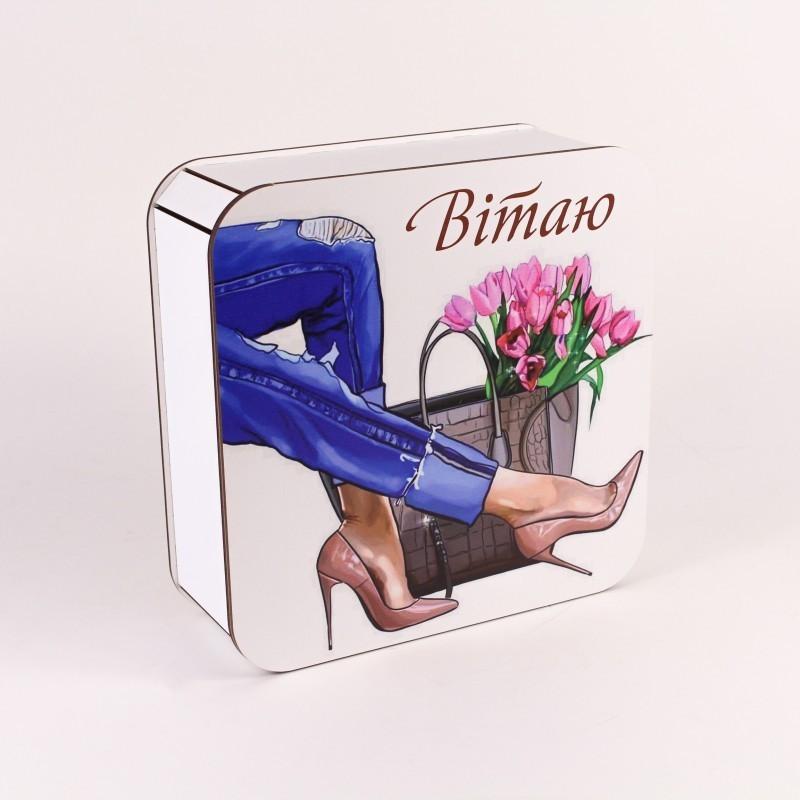 Квадратная коробка "Поздравляю" размер 25х25 см, глубина 10 см