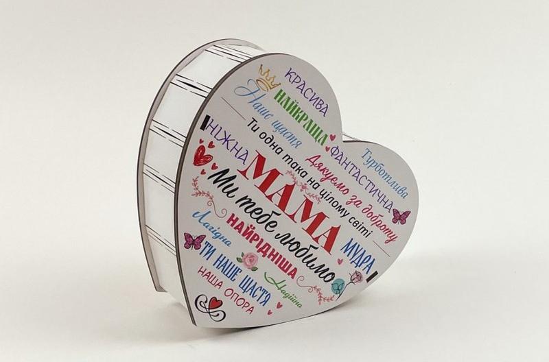 Коробочка сердце белая "Мама мы тебя любим!" Размер 12х12,5 см, глубина 5 см Размер 18,5х19 см, глубина 6,5 см Размер 23х23 см, глубина 7 см Размер 31х32,5 см. глубина 8 см