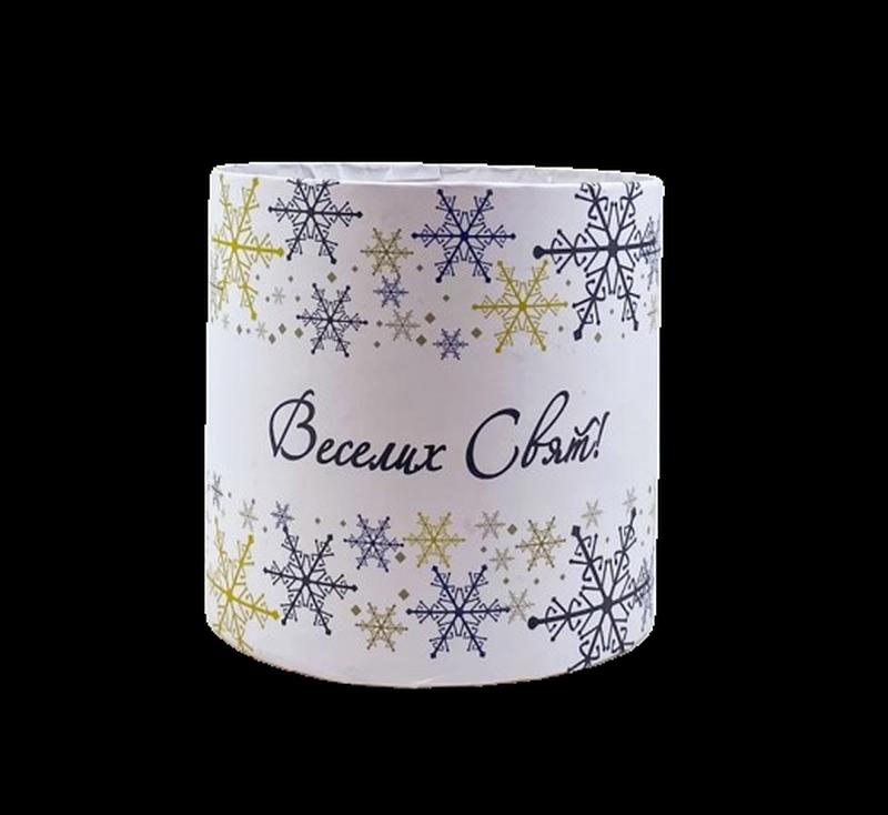 Коробка круглая 15х15 "Веселых Праздников!" Размер - 15х15 см.