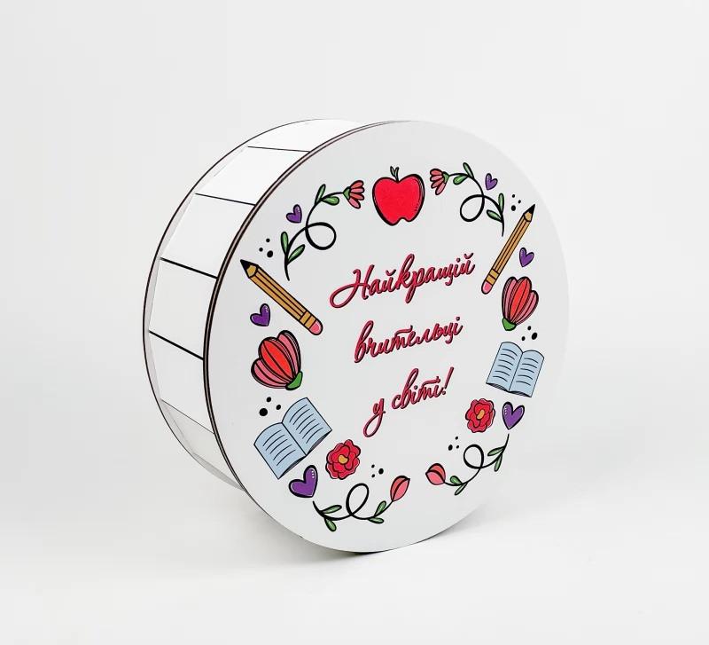 Круглая коробка "Самой лучшей учительнице на свете" Размер: диаметр 24 см, высота 9 см