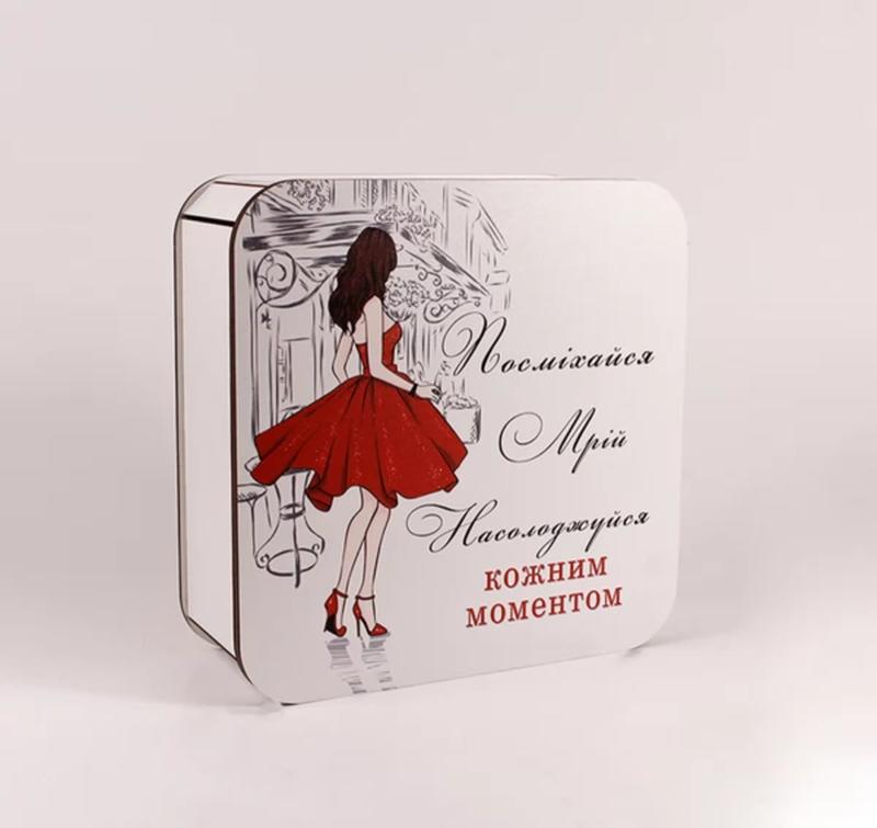 Подарочная коробка "Улыбайся мечтай наслаждайся" средняя. Деревянная коробка предназначена для оформления оригинального подарка, составления букета или композиции из фруктов, овощей, мыла, сладостей. Изготовлен из высококачественного экологичного материала, ДВП толщиной 3 мм, поэтому долго будет сохранять свой безупречный вид. Композиции в таких коробках, непременно порадуют как взрослых так и детей.