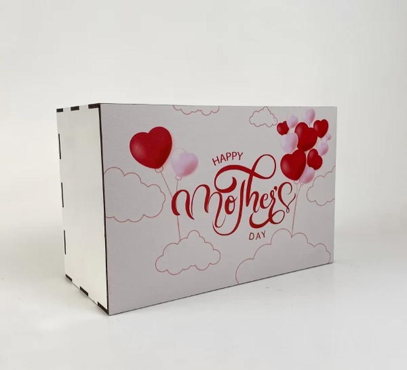 Подарочная коробка прямоугольная "Happy Mother's Day. Деревянная коробка предназначена для оформления оригинального подарка, составления букета или композиции из фруктов, овощей, мыла, сладостей. Изготовлен из высококачественного экологичного материала, ДВП толщиной 3 мм, поэтому долго будет сохранять свой безупречный вид. Композиции в таких коробках, непременно порадуют как взрослых так и детей.
