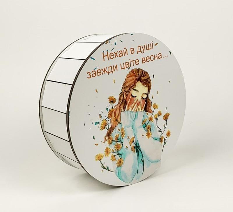 Подарочная коробка круглая "пусть в душе всегда цветет весна"