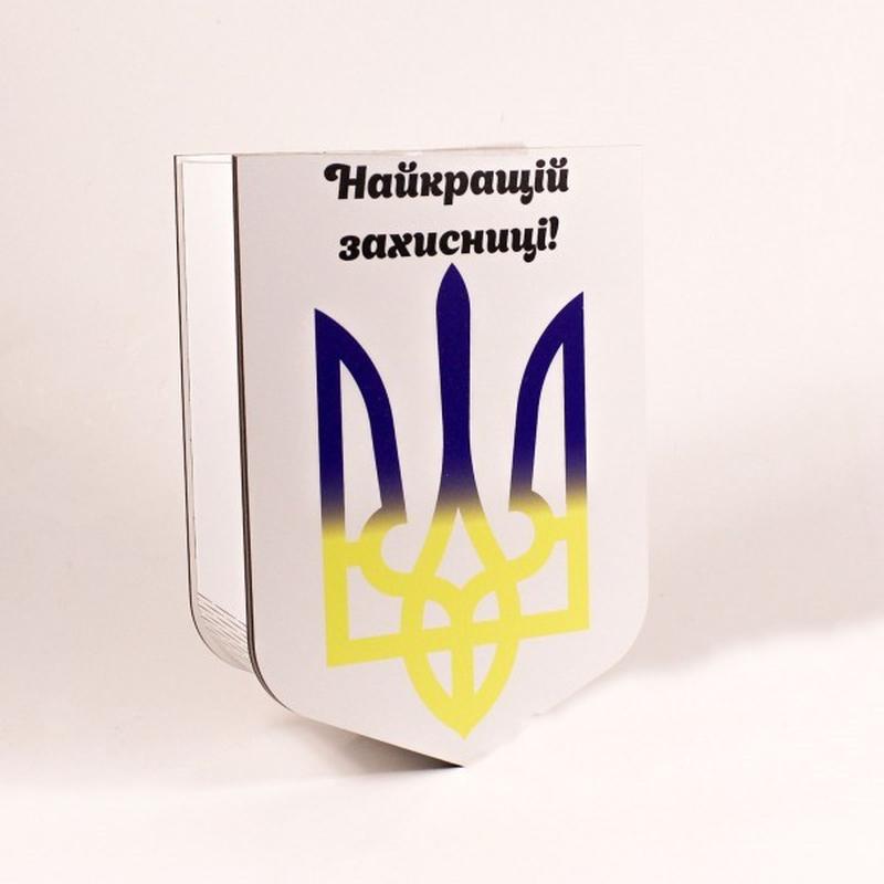 Подарочная коробка "Тризуб" Лучшей Защитницы! Деревянная коробка предназначена для оформления оригинального подарка, изготовлена из высококачественного экологичного материала, ДВП толщиной 3 мм, поэтому долго будет сохранять свой безупречный вид.