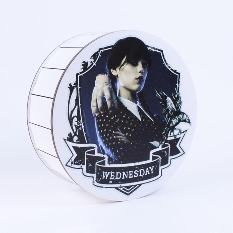 Подарочная коробка круглая "Wednesday & Rich" Деревянная коробка предназначена для оформления оригинального подарка, составления букета или композиции из фруктов, овощей, мыла, сладостей. Изготовлен из высококачественного экологичного материала, ДВП толщиной 3 мм, поэтому долго будет сохранять свой безупречный вид. Композиции в таких коробках, непременно порадуют как взрослых так и детей
