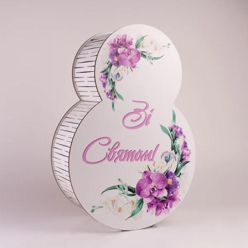 Подарочная коробка 8 марта "С Праздником" Деревянная коробка предназначена для оформления оригинального подарка, составления букета или композиции из фруктов, овощей, мыла, сладостей. Изготовлен из высококачественного экологичного материала, ДВП толщиной 3 мм, поэтому долго будет сохранять свой безупречный вид. Композиции в таких корзинках, обязательно порадуют как взрослых так и детей.