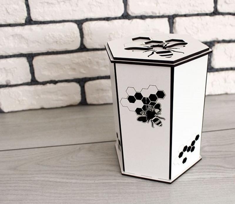 Подарочная коробка "Пчелка" Длина 14,5 см Ширина 14,5 см Высота 18 см Форма фигурная День рождения, Праздник Весны, День матери, именины Кому матери, бабушке, дочери, сестренке, подруге, коллеге, любимой, жене, отцу, дедушке, сыночку, братику, другу, коллеге, любимому, мужу Пол женщинам, девочкам, мужчинам, мальчикам Цвет белый Материал дерево Способ нанесения лазерная резка