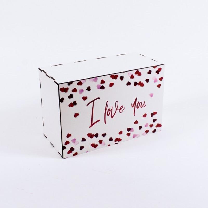 Подарочная коробка "I love you" сердечко Деревянная коробка предназначена для оформления оригинального подарка, композиции из фруктов, овощей, мыла, сладостей. Изготовлен из высококачественного экологичного материала, ДВП толщиной 3 мм, поэтому долго будет сохранять свой безупречный вид. С ее помощью можно создать невероятный красивый презент на день Святого Валентина, день рождения, свадьбу, юбилей или другой праздник.