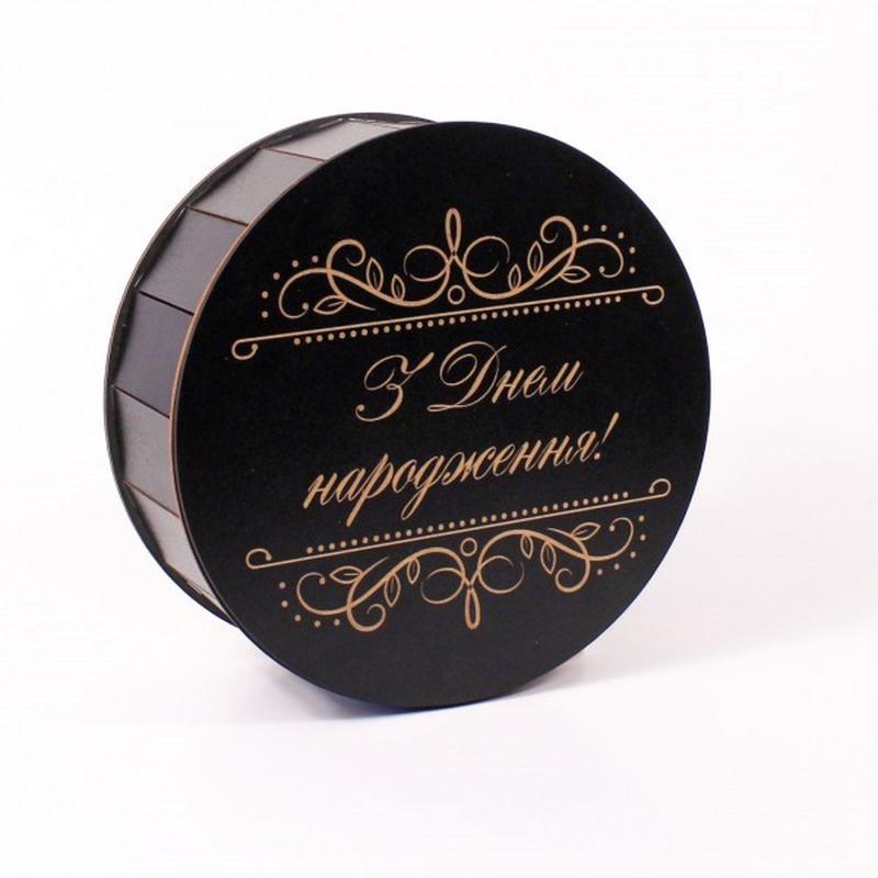 Подарочная коробка круглая черная "с днем рождения" с гравировкой