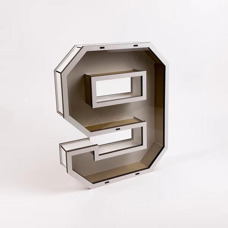 Подарочная коробка в форме цифры "9" с прозрачной крышкой