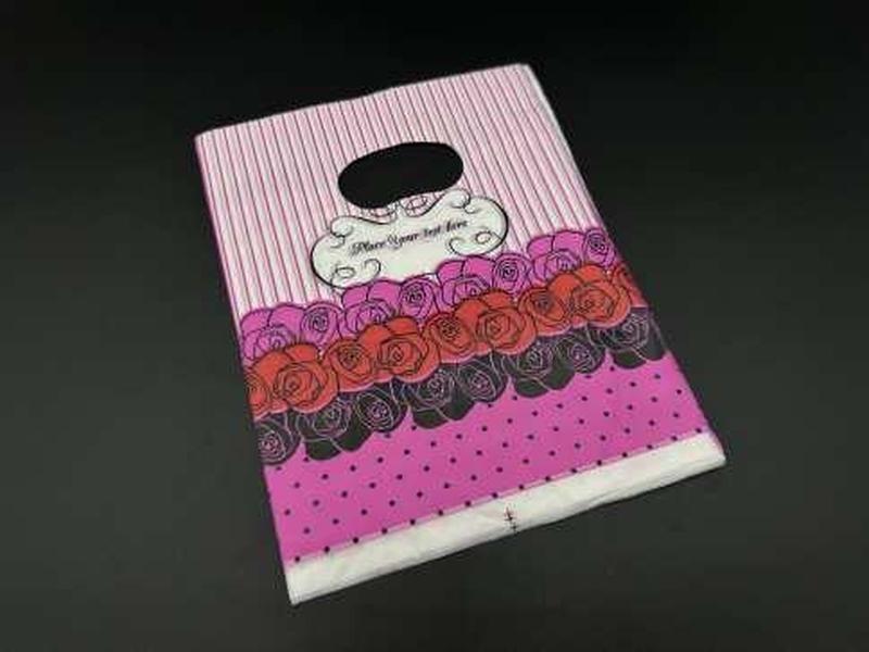 Подарункові поліетиленові пакети 15х20см "place your text here ". колір розовий. / подарун...
