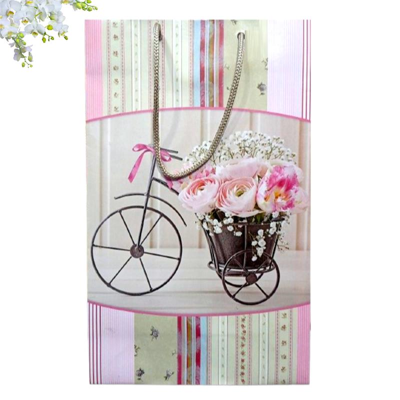 Пакет подарунковий паперовий ровер з квітами 25х16х7 см