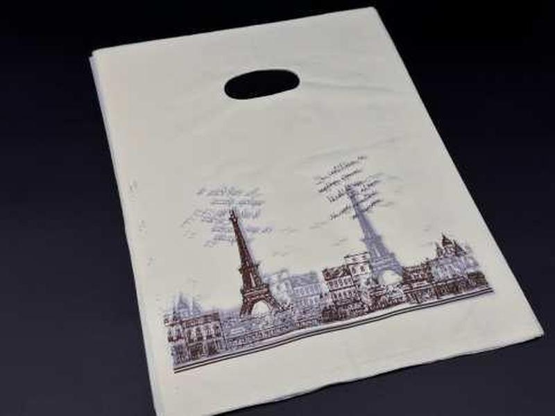 Подарункові поліетиленові пакети 25х35см Париж. Колір слонова кістка.