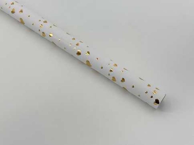 Папір подарунковий. колір білий + золоте сердечко 70х100см / папір подарунковий. колір біл...