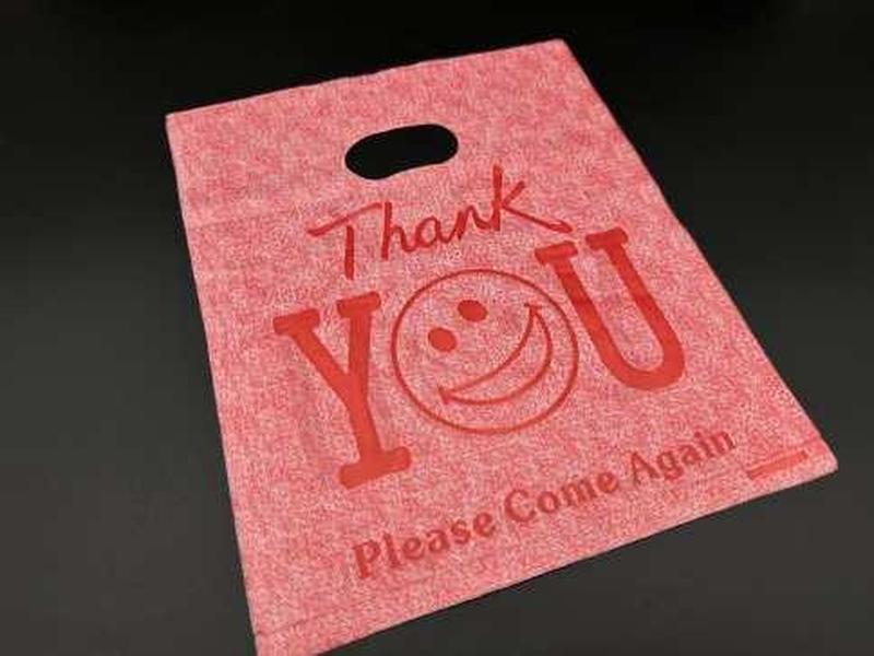 Подарункові поліетиленові пакети 20х25 "thank you. please come again". колір червоний. / п...
