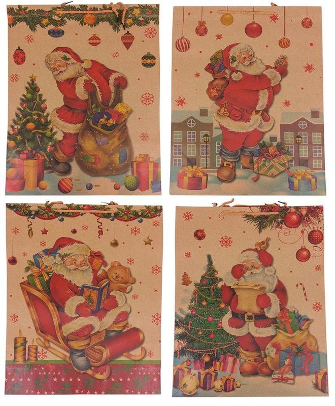 Пакет бумажный подарочный новогодний крафт 38 х 50 х 12,5см,170г/м2 170-50 knz