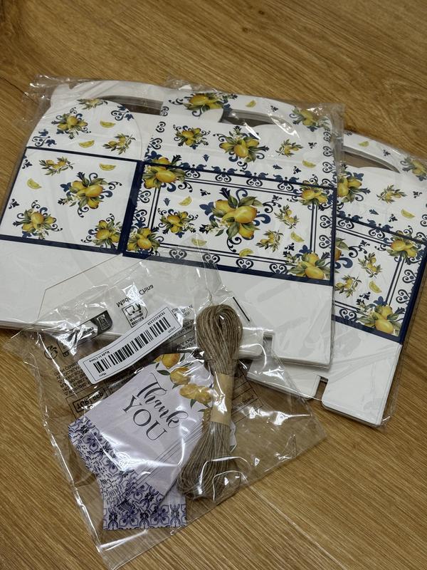 Нова коробка та теги ( для підпису) для тортів, пирогів та десертів. Для весілля для день народження, тематична вечірка. З лимонами, вінтажна Є 22 коробки Та 48 листівок Можна окремо , можна набором Коробки 22 штуки - 900 грн Листівки з шнуром 48 штук - 350 грн Разом - 1150 грн