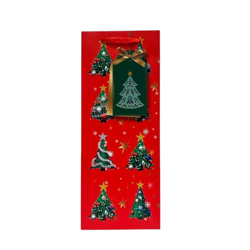 Подарочный новогодний пакет-под бутылку, размер 35х14х11 см, 1 шт, арт 019724, ассорти