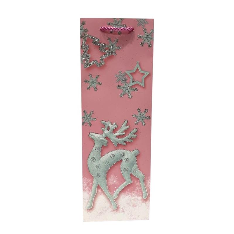 Подарочный новогодний пакет-под бутылку, размер 12х35х9 см, 1 шт, арт 019782, ассорти