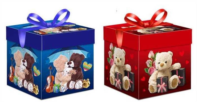 Яркие подарочные коробки с медвежатами Подарочные коробки C 75684 представлены в двух оригинальных дизайнах с милыми медвежатами. Они отлично подходят для упаковки подарков на различные праздники, добавляя особый шарм и праздничное настроение. - Материал: качественный картон - Два варианта оформления: синий с медвежатами и красный с медведем и цветами - Удобная форма и размер для разных подарков - Украшена лентами для дополнительной эстетики