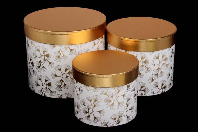 Набор круглых подарочных коробок бело-золотых (комплект 3 шт)