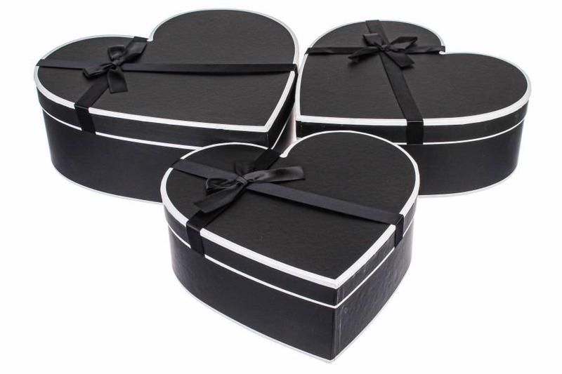 Набор подарочных коробок в форме сердца черных с белой полосой, разм. l:33х32х11,5см (комп...