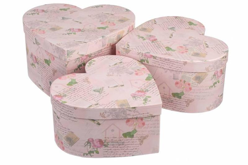 Подарочные коробки в форме сердца розовые с цветочками, разм.l:29х28х16 см (комплект 3 шт)