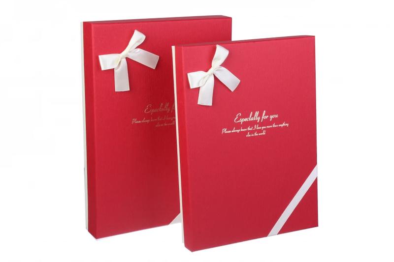 Набор подарочных коробок прямоугольных с белым бантиком красных (комплект 2 шт)