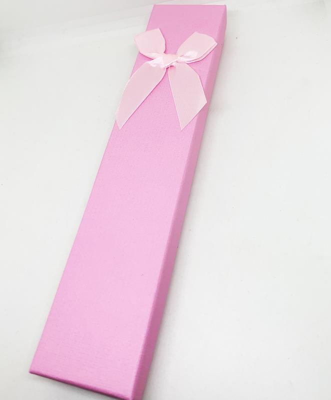 Подарочная коробочка для украшений: браслетов, цепочек или часов розовая с бантом, изготовлена из дизайнерского картона. Размер: Д х Ш х В (мм) = 202х43х20. Цвет: розовый.