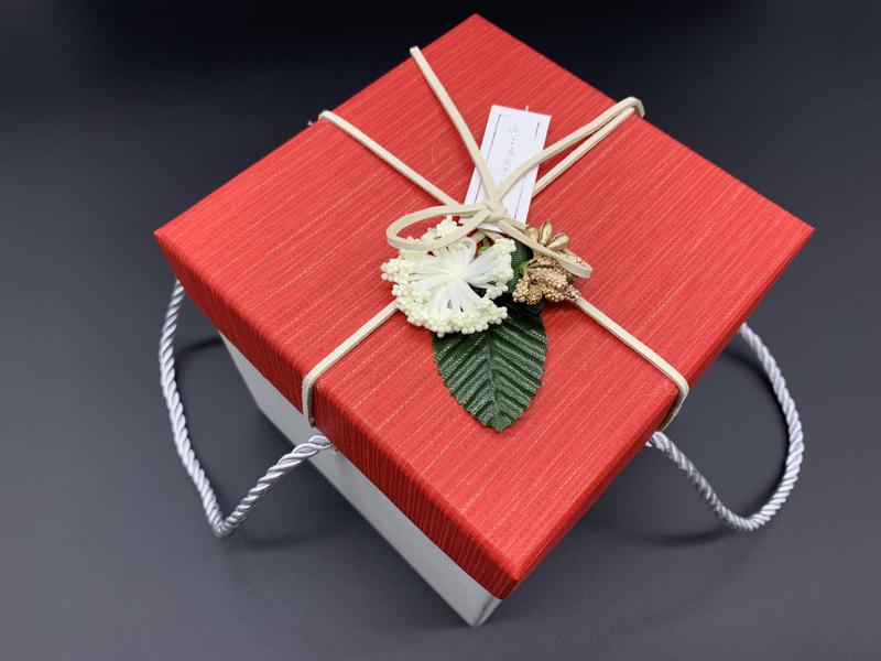 Коробка подарункова з квіточкою і ручками. колір червоний. 13х13х13см. / коробка подарунко...