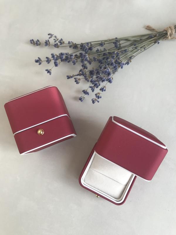 Классные коробки бордового цвета, очень крутые по дизайну, не большего размера. Для кольца или пуссетов очень подойдёт. Отправляем по предоплате 50 грн.