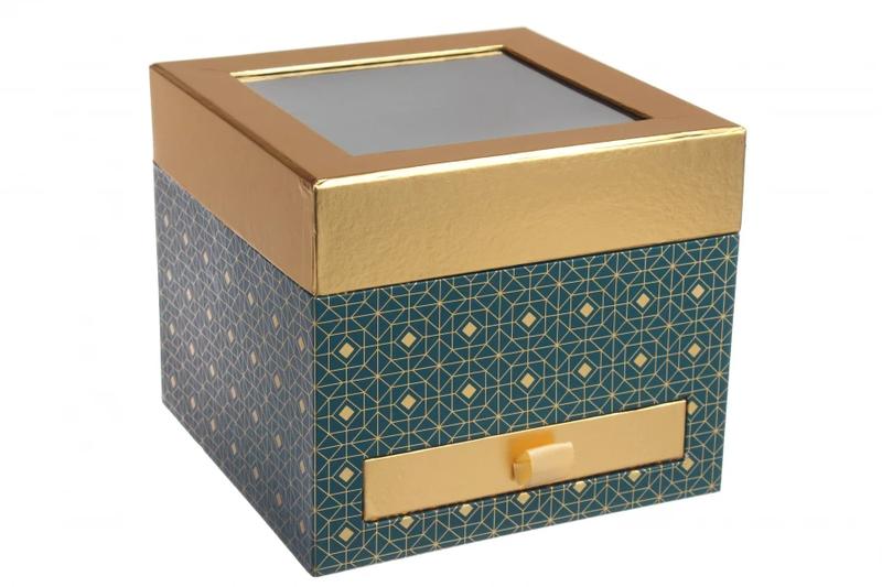 Подарочная коробка с прозрачной крышкой и ящичком, размер 19х19х16,5 см зеленая